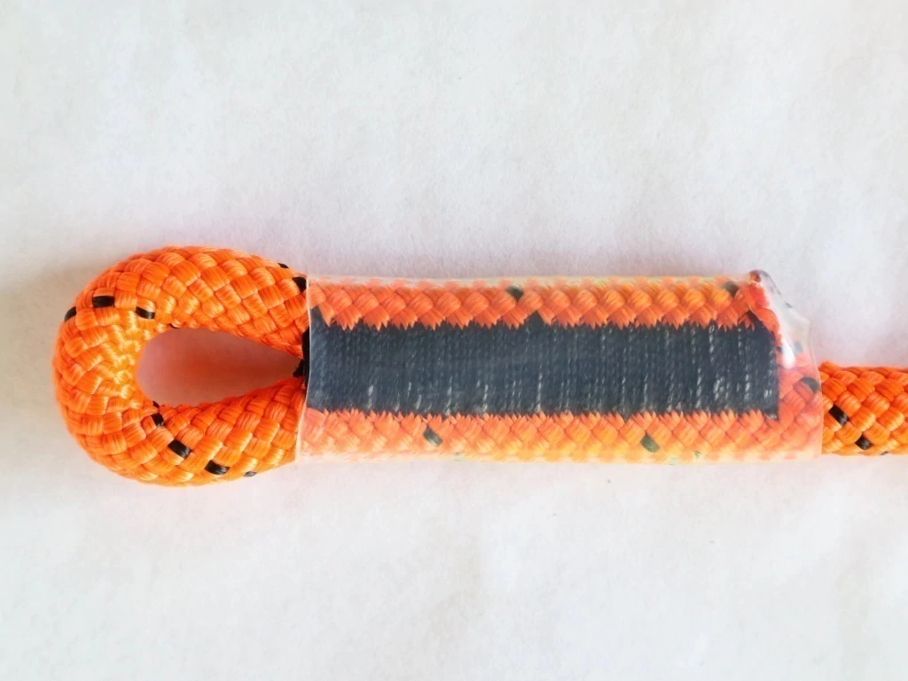 Este cabo cuenta con un ojo grande que permite engancharlo al arnés y un ojo pequeño en el otro extremo para el mosquetón.