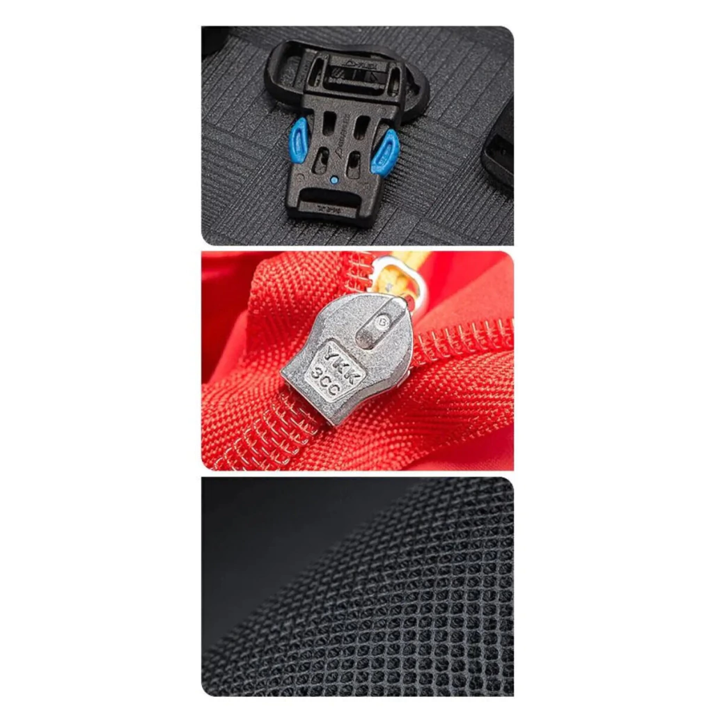 - Organización eficiente: 11 compartimentos independientes, incluidos bolsillos de acceso rápido y un espacio para manta térmica de emergencia.