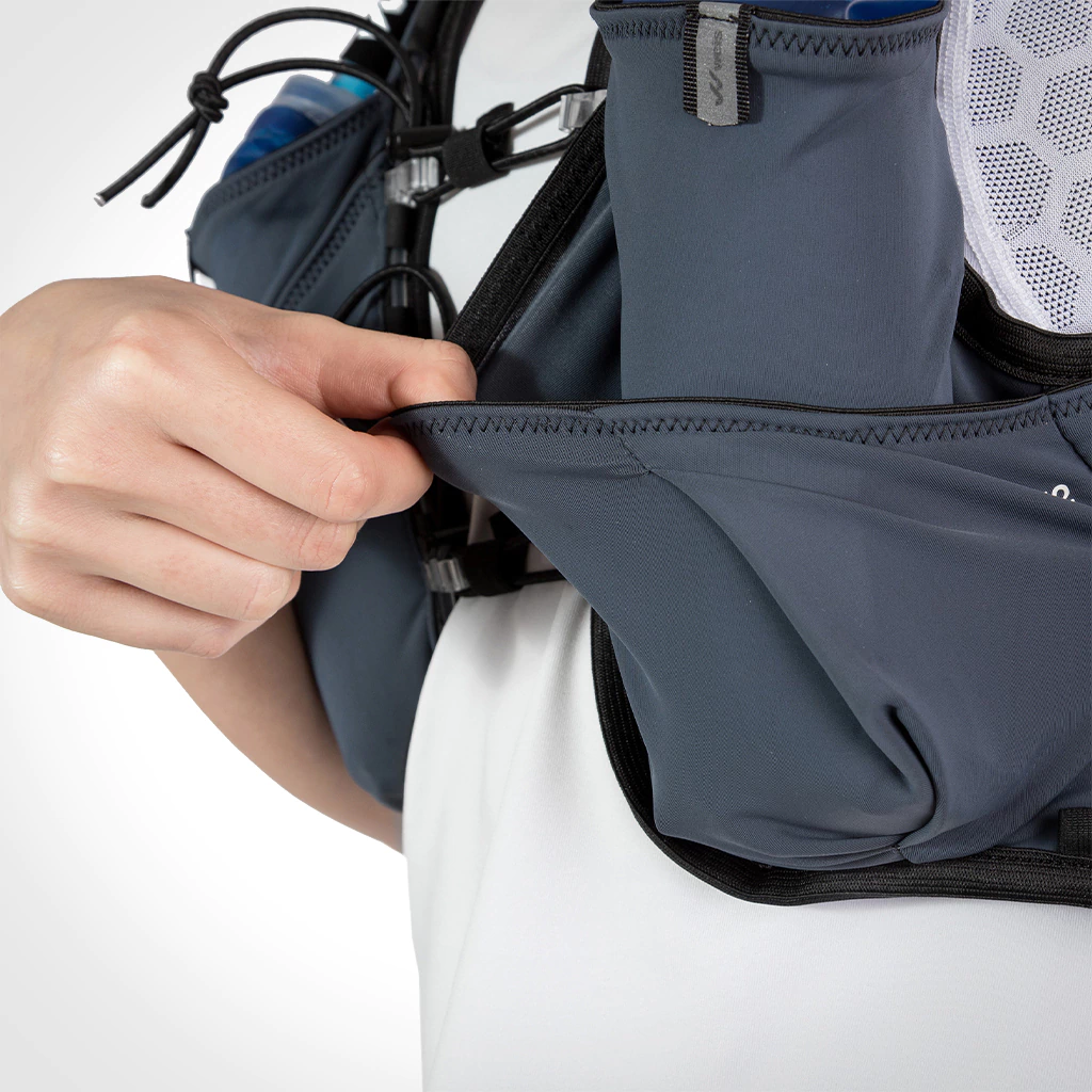 Con todo el confort de la tecnología FREELASTIC TECH el chaleco minimalista de la serie SIMER ha sido diseñado hasta el último detalle y en un peso ultraligero para llevar el material indispensable en entrenamientos y competiciones. El chaleco de hidratación SIMER VEST 1 L reúne 11 bolsillos, uno de ellos en la espalda, expandible, con capacidad para llevar un rompevientos o una manta térmica, todo al alcance de la mano.