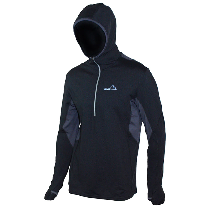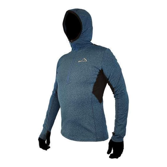 Remera térmica de hombre con diseño ergonómico, de manga larga y capucha incorporada. Posee lugar para pasar el dedo pulgar y un bolsillo pequeño en la espalda. Confeccionada en Active Therm con spandex, antimicrobial, no larga olor, secado rápido. Combinada con Lycra liviana en bajo manga y espalda. Ideal para los días de frio intenso prolongado.